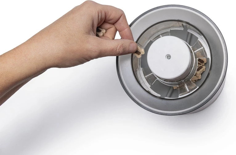 De hondensnoepjes kunnen uit vier gaten aan de zijkanten van het spel vallen. Iedere keer, kan het snoepjes uit een ander gat vallen. Dit maakt het voor jouw hond extra interessant en bovendien onvoorspelbaar. Het tikken op het denkspel kan aangeleerd worden door bijvoorbeeld het commando push te gebruiken. Om verschuiven van Brain Game Delicious tegen te gaan, zijn er aan de onderzijde zuignappen en plakstrips toegevoegd.
