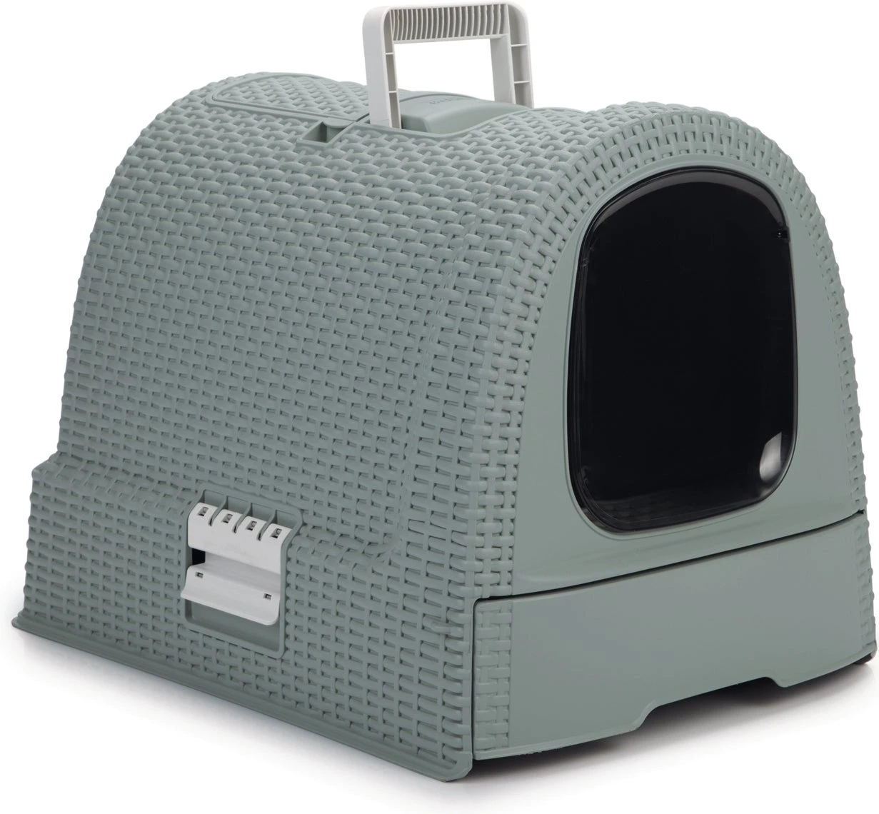 Een schitterend uitziende design kattentoilet van het merk Curver. Dit kattentoilet is gemaakt van het oersterke materiaal Rattan, een hoogwaardig gevlochten kunststof. De kattenbak is voorzien van een handig plateau met gaatjes dat fungeert als een soort schoonloopmat omdat er geen kattengrit meer blijft plakken onder de pootjes van je kat. Daarnaast is de kattenbak voorzien van een handige uitschuiflade waardoor je in één snelle oogopslag kunt controleren of deze al aan verschoning toe is. Niet alleen een aanwinst voor jou en je kat, maar ook voor je interieur!