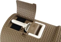 Een schitterend uitziende design kattentoilet van het merk Curver. Dit kattentoilet is van het oersterke materiaal Rattan, gemaakt van een hoogwaardig gevlochten kunststof. Voorzien van een plateau met gaatjes wat er voor dient, dat wanneer jouw kat van het toilet komt, hij of zij een deel van het kattengrit onder de poten al kwijt is. Tevens een handige uitschuifbare lade, zodat je in een oogopslag kunt zien of het kattentoilet al aan verschoning toe is. Een aanwinst voor elk interieur. Kleur: mokka.