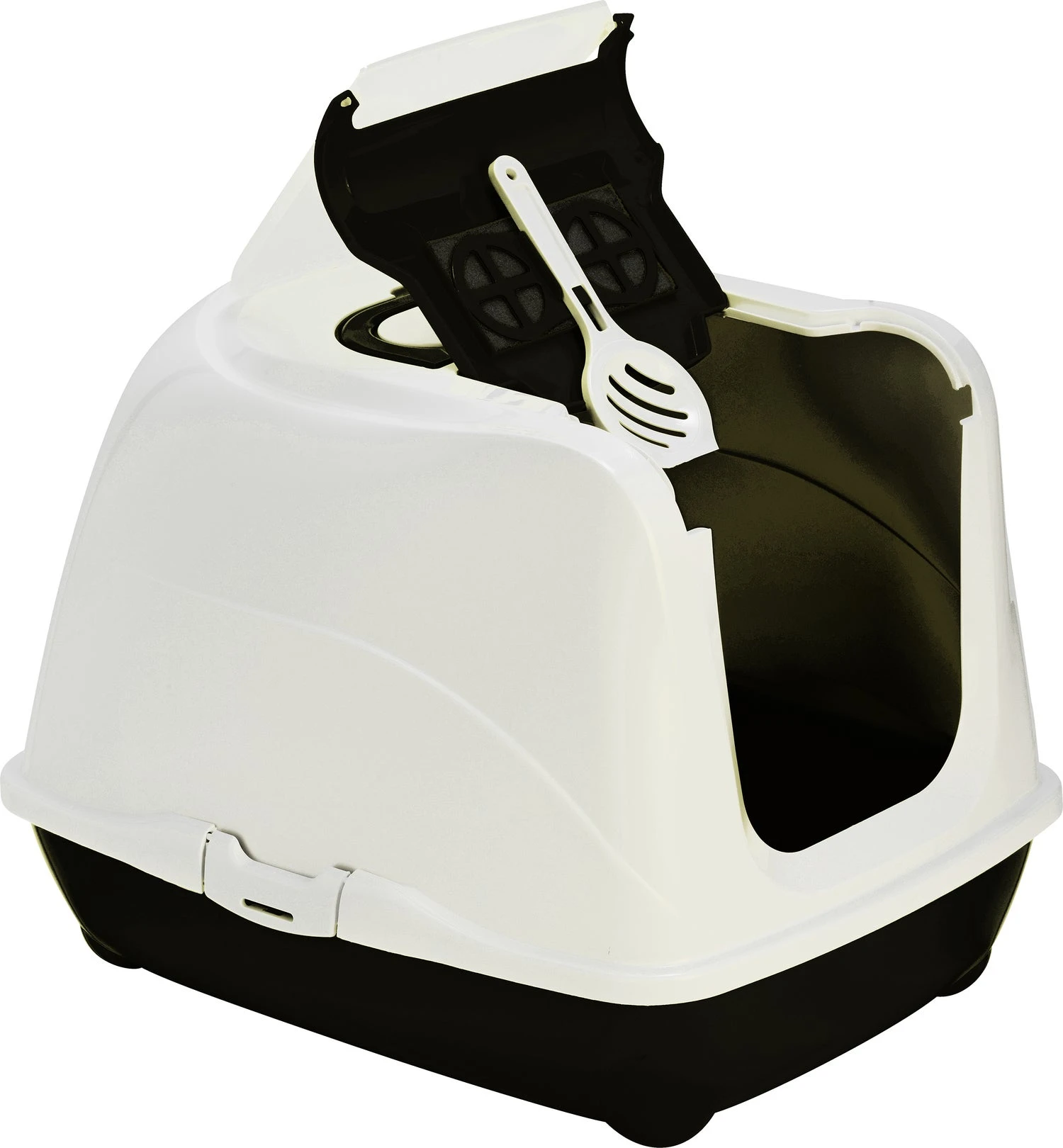 Beschikt over een makkelijk handvat en een licht doorschijnende deur voor extra privacy. De Flip Cat Jumbo is gemaakt van premium kwaliteit kunststof voor langdurig gebruik. Inclusief kattenbakschep.