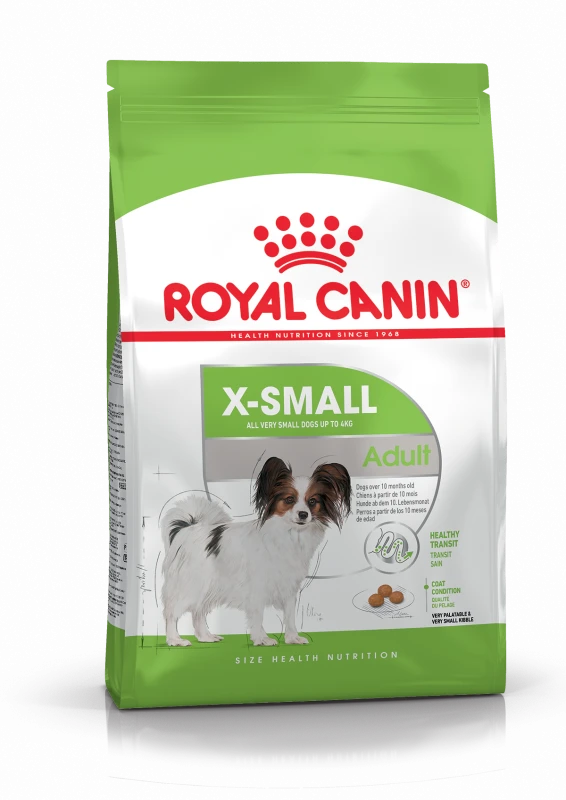 ROYAL CANIN® X-Small Adult is geschikt voor zeer kleine honden met een lichaamsgewicht tot 4 kilogram, en is speciaal samengesteld met de voedingsbehoeften van jouw kleine volwassen hond in het achterhoofd.